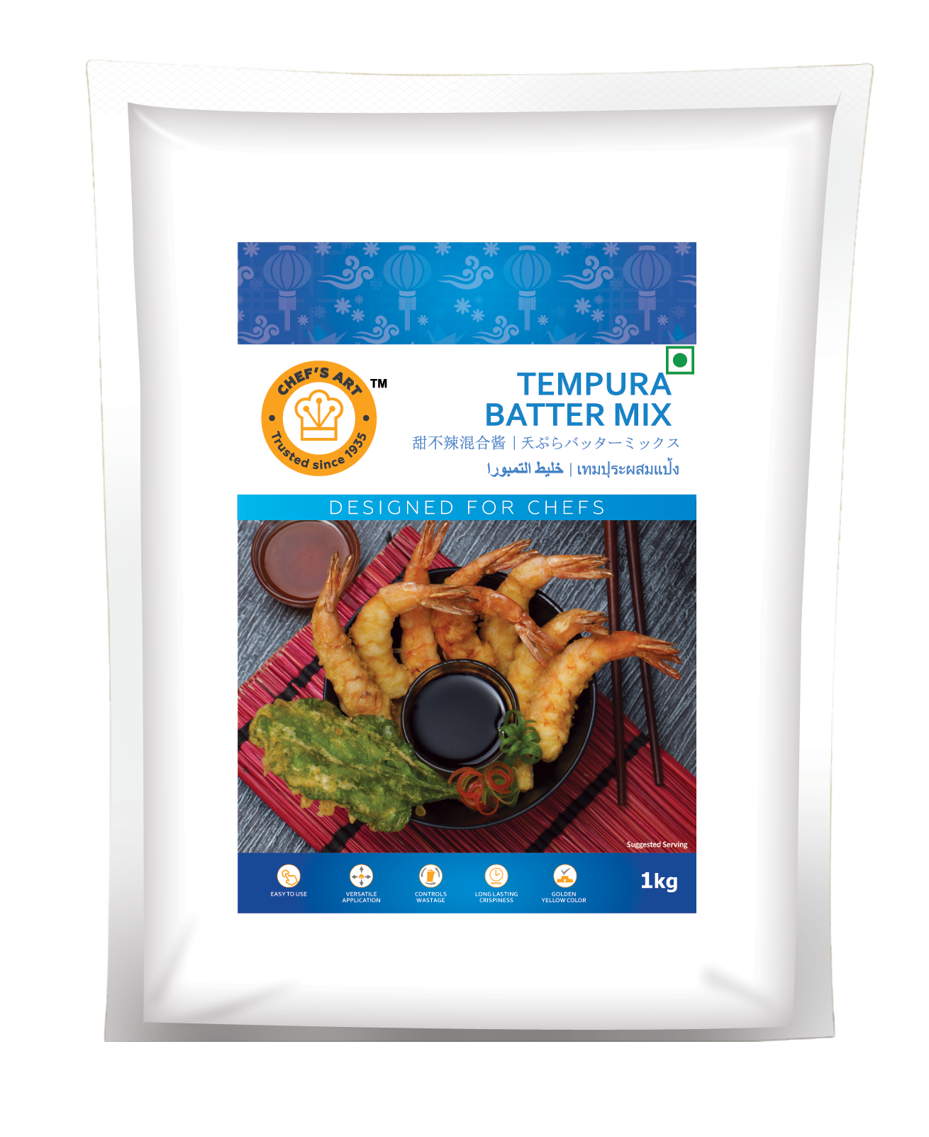 Chef's Art Tempura batter mix is a perfect embodiment of traditional recipe that is guaranteed to impart rich golden yellow color to your deep fried ingredients & keeps them crispy for a longer time. It has versatile applications in global cuisine & is designed for right consistency & convenience.